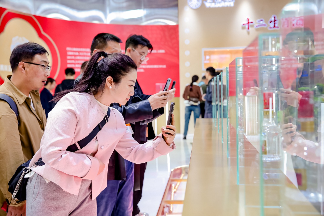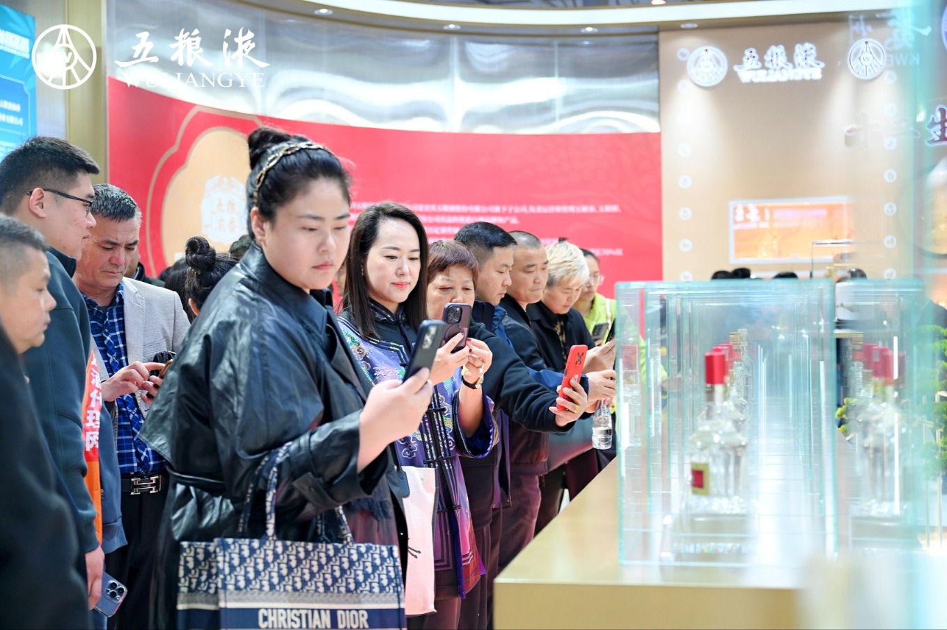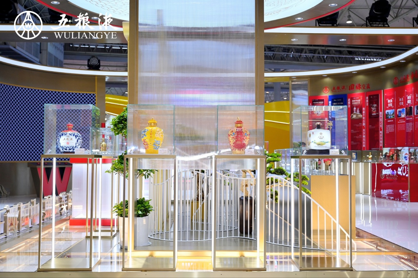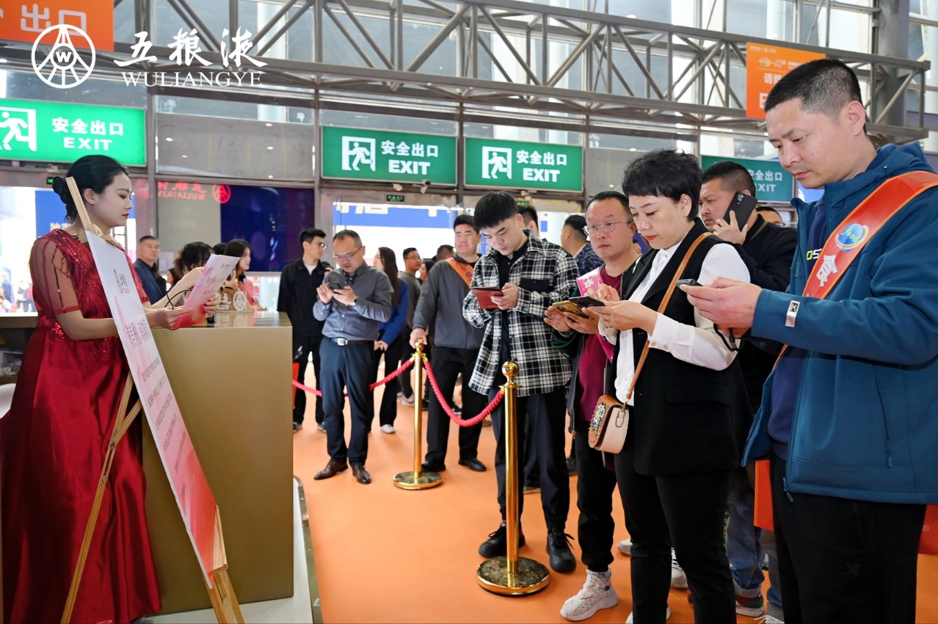 产品展陈上,经典五粮液、第八代五粮液、501五粮液等核心产品,五粮液十二生肖酒、和美中国系列酒等高端文化定制酒,五粮春、五粮醇等五粮浓香系列酒,五粮本草等露酒、果酒产品,共计数十款经典匠心之作集中亮相,丰富、优质的产品体系,吸引南来北往的客商们前来洽谈咨询,不少逛展观众也驻足打卡。